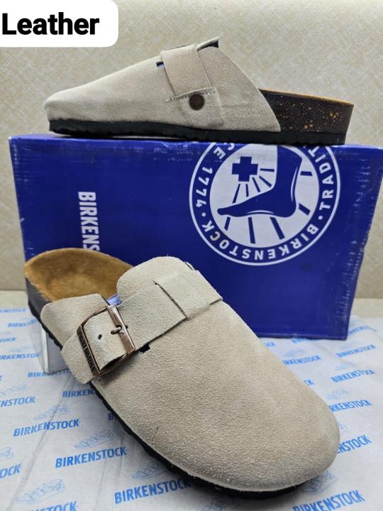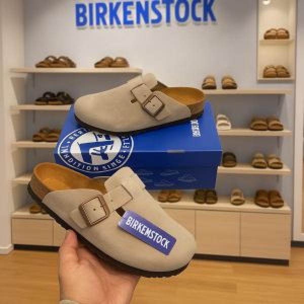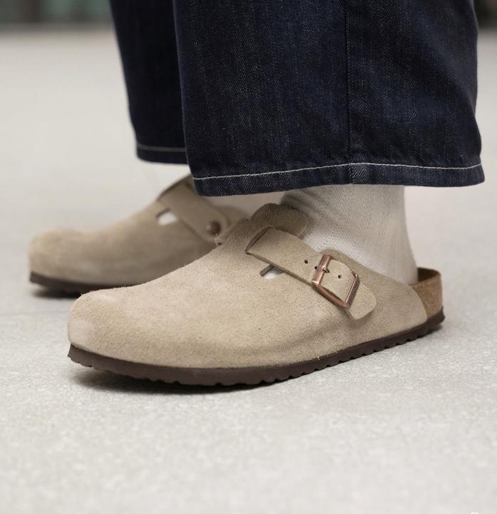 Birkenstock Boston Beige mouse with sole branding