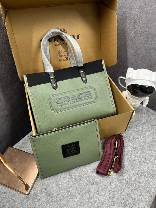 Coach_Field_Tote_30_Authenic_Black_Canvas_Olive_Leather_With_Pouch_OG_Box_&_Dust_Bag_6739_Olive