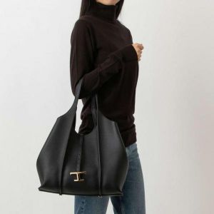 Tods T Timeless Premium Quality Leather Bag With Extra Pouch & OG Magnetic Box With Dust Bag (Black - 444)