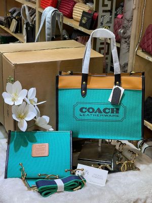 Coach_Field_Tote_30_Authenic_Green_Canvas__Leather_With_Pouch_OG_Box_&_Dust_Bag_6739_Green