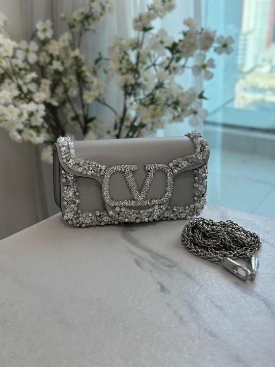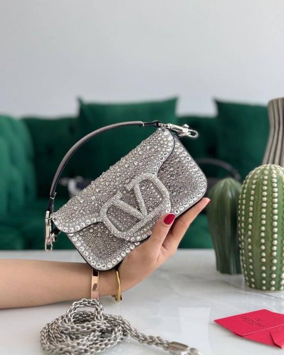 Valentino_ Garavani Loc shoulder bag featuring a crystal-embellished VLogo Signature element and decorative stone appliqu Bag with Box premium quality
