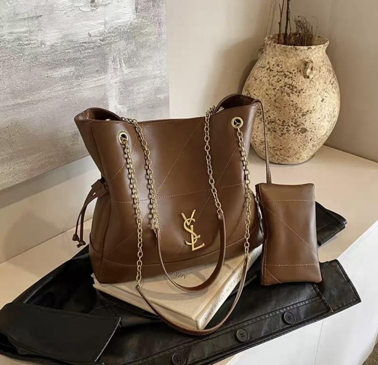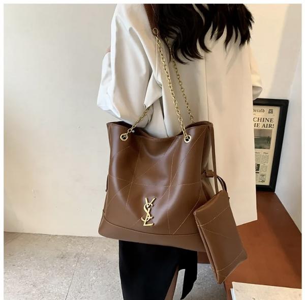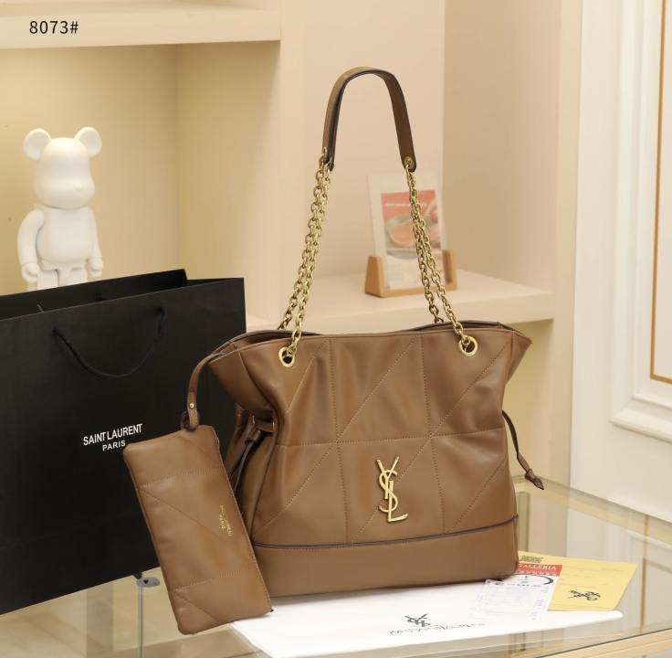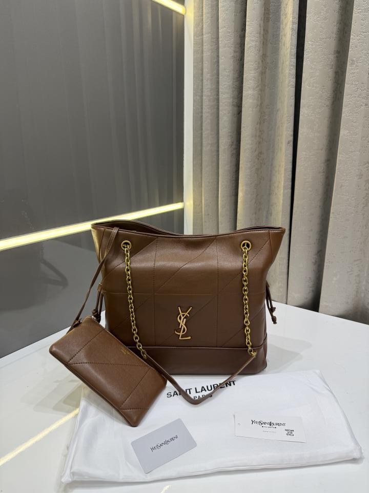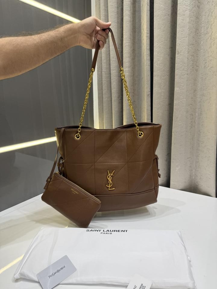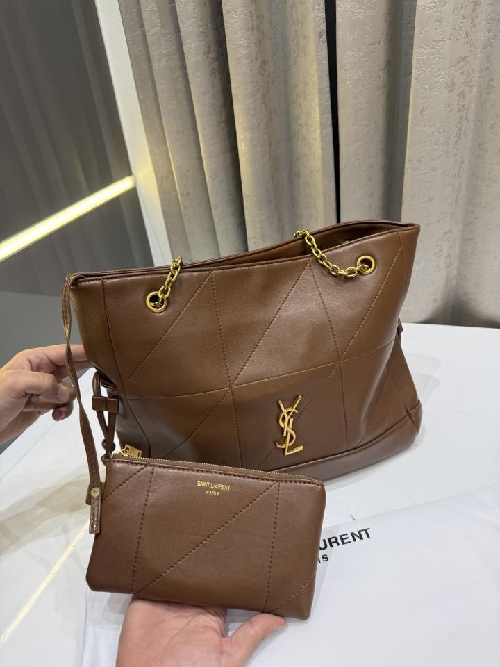 YSL SAINT LAURENT BROWN PREMIUM QUILTED LEATHER TOTE BAG WITH DUST BAG